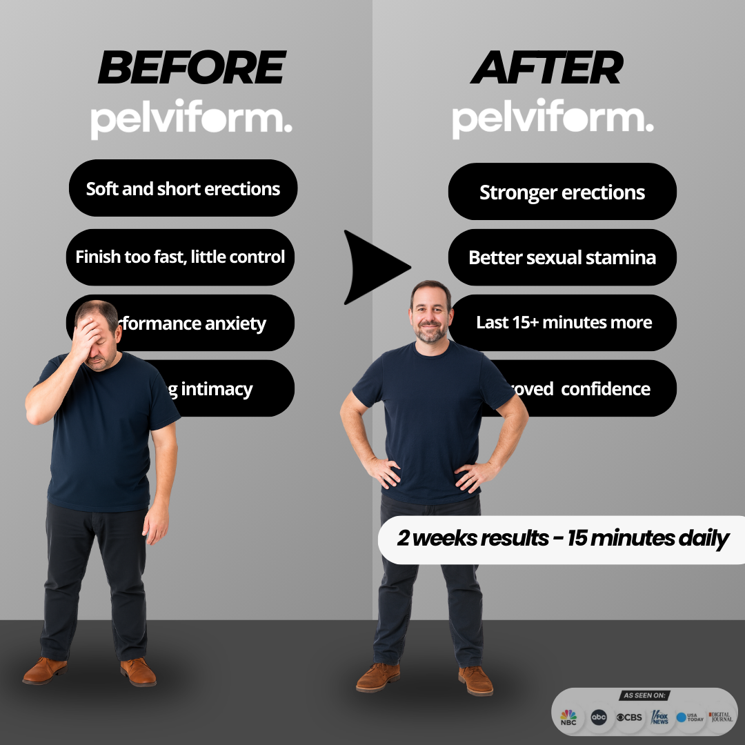 My performance in bed was pretty terrible, let's be honest. Low stamina, needed forever to recover between rounds, and I could tell my wife was being way too polite about the whole situation. Figured this was just my lot in life. When I saw the Pelviform, I was super skeptical—seemed too good to be true and I've been burned by "miracle solutions" before. But my buddy kept bugging me about it so I finally caved. Been using it consistently for about 2 months, just 10 minutes every morning as part of my routine. The transformation has been incredible. I can last 15+ minutes now, go multiple rounds like I'm some kind of machine, and my stamina is off the charts. Last weekend my wife actually asked for a timeout—never thought I'd see the day! She keeps saying she doesn't know what got into me but she's definitely not complaining. Best investment I've made in years, hands down."